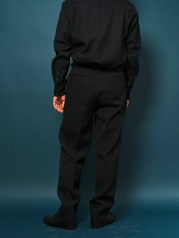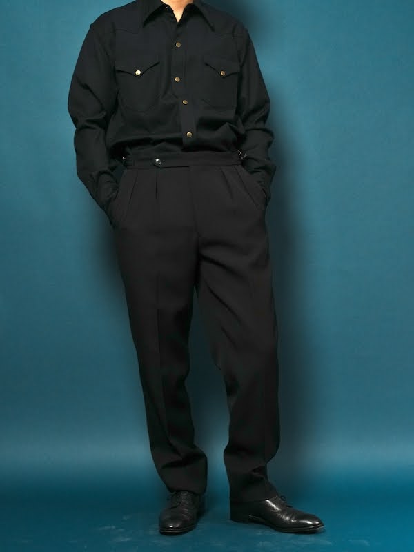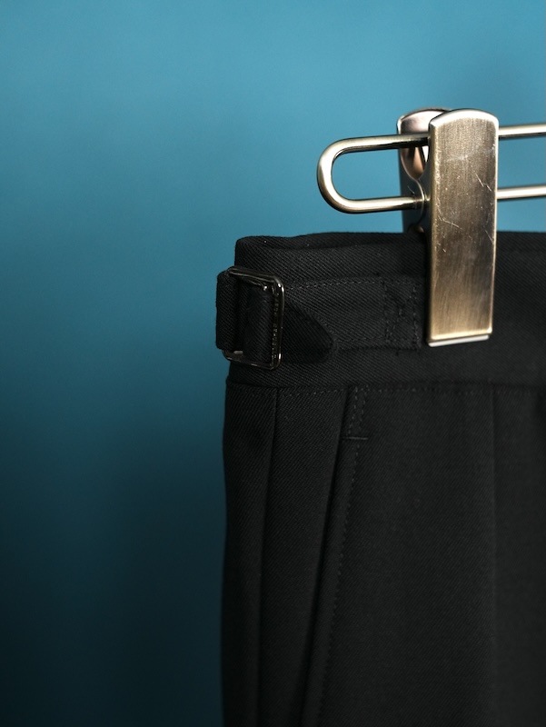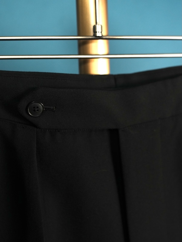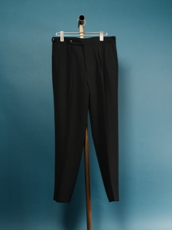 デザインソースは、1940年代のフランスのフォーマルドレスパンツで腰やお尻まわりにはゆとりを持たせながらも、裾にかけて、テーパードがかかっている為、スマートな印象に。