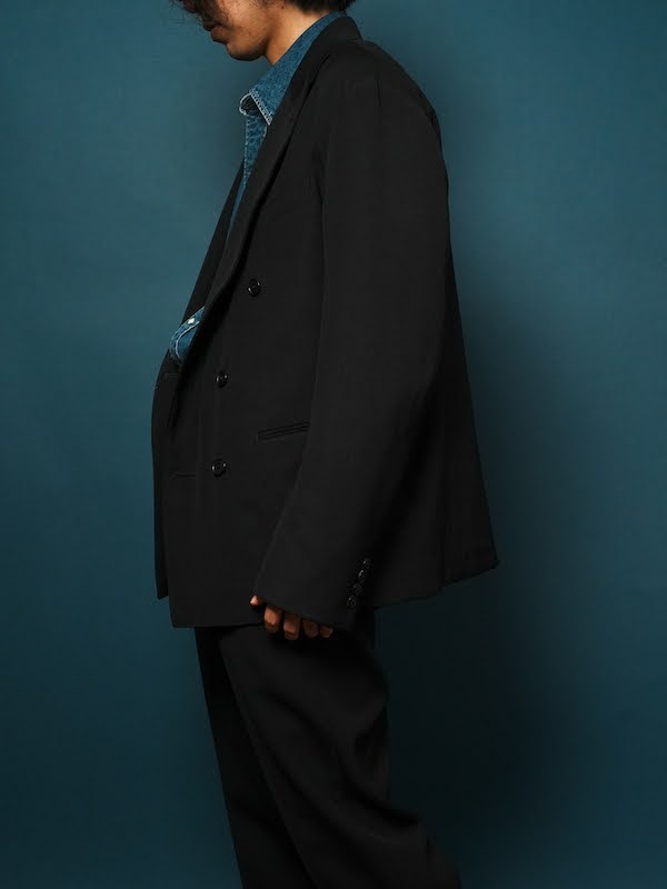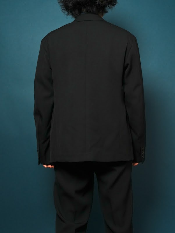 同生地のスラックスと合わせればより上品に、うちはワンタックのややスリムなタイプのパンツをセットアップで取ってます。